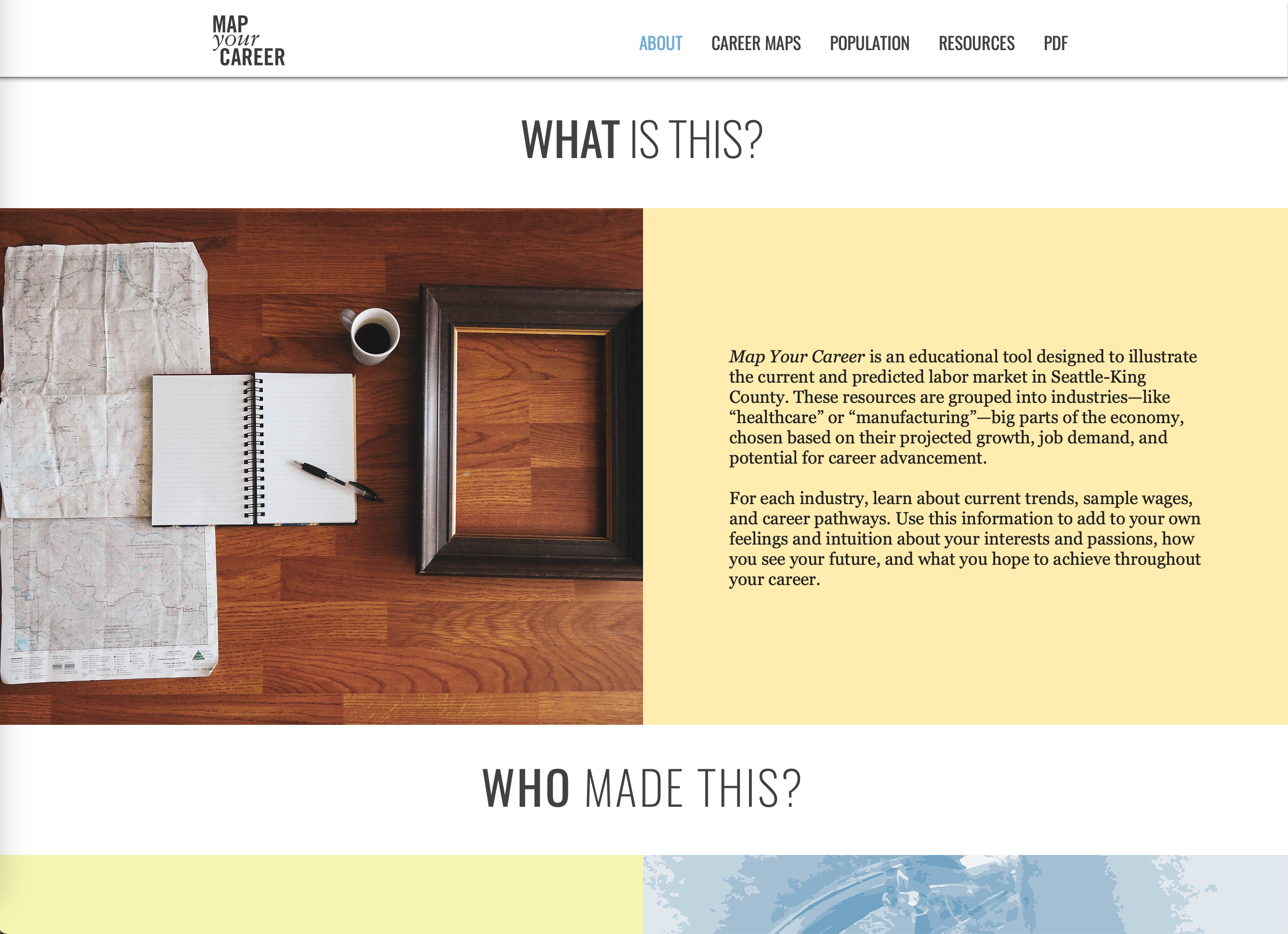 So, what is Map Your Career? At its most basic, it’s a career pathway guide. Starting a career as a young person is overwhelming, and the goal of Map Your Career is to take all the labor market information available about in-demand jobs and pathways and lay it out in a way that makes it easy to digest for a school-age audience.