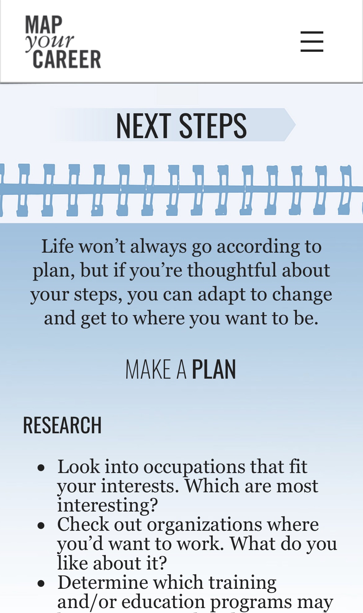 - Main Deliverable: Redesigned book and website for “Map Your Career” educational resource