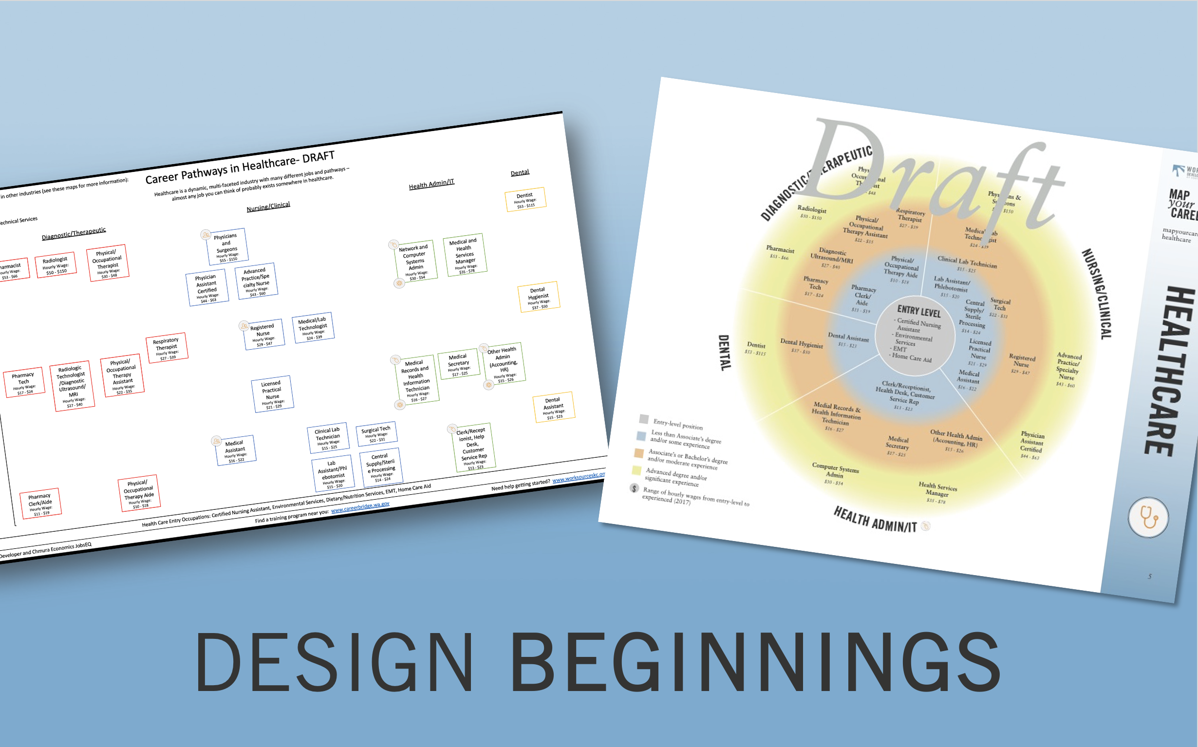 Map Your Career was not my project initially. The organization had been outsourcing design to consultants, and it was only when those efforts failed to meet expectations that I was asked to step in. I had just started to prove myself in graphic design, and it was risky but in retrospect it was exactly the right call.